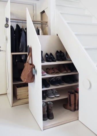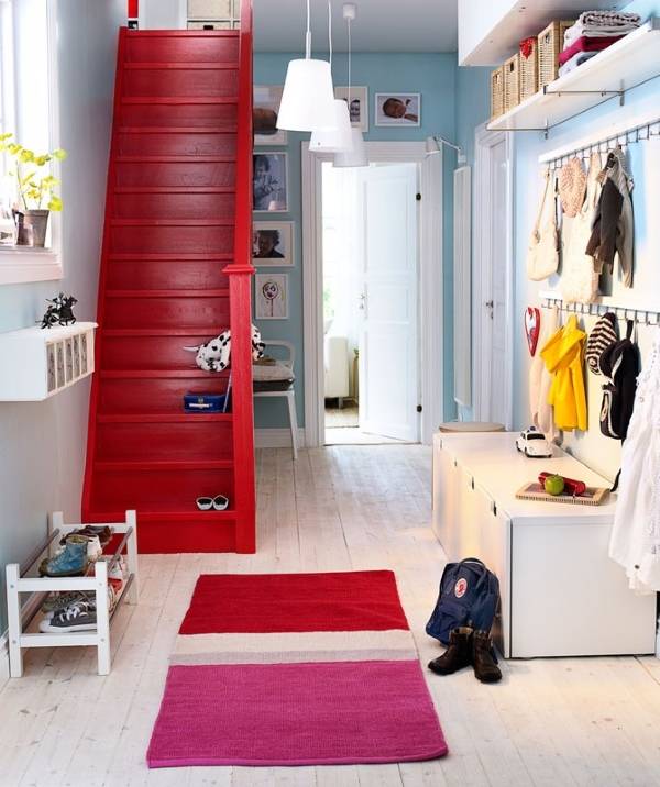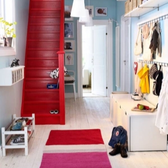 - There are often hallways in the houses with stairs to the second floor. If the corridor is very small, it can be a problem. In this case, you should make the most efficient use of the space under the stairs, because sometimes you can place a small closet for storing necessary things. If the staircase is located in a spacious room, problems with the situation should not arise. Nevertheless, it is important that the steps are combined in design with the hallway and the room into which they lead.