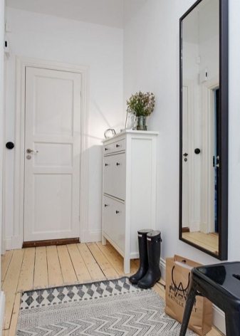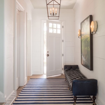 Carpet is another important accessory. It should be small and comfortable.In a minimalist interior, the carpet can become a bright accent, and if you have chosen a bright and diverse setting, then it is better that it is minimally noticeable on the floor. Also in the hallway you can put different vases with dried, cut or fresh flowers.