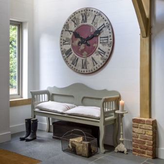 That details affect the comfort in the room. With their help, you can add accents and make the space original and individual. For example, coat hooks, umbrella holders, key holders - all these small functional details should fit well into the interior. Often in the hallway placed the clock - they can be put on an open shelf or hang on the wall.