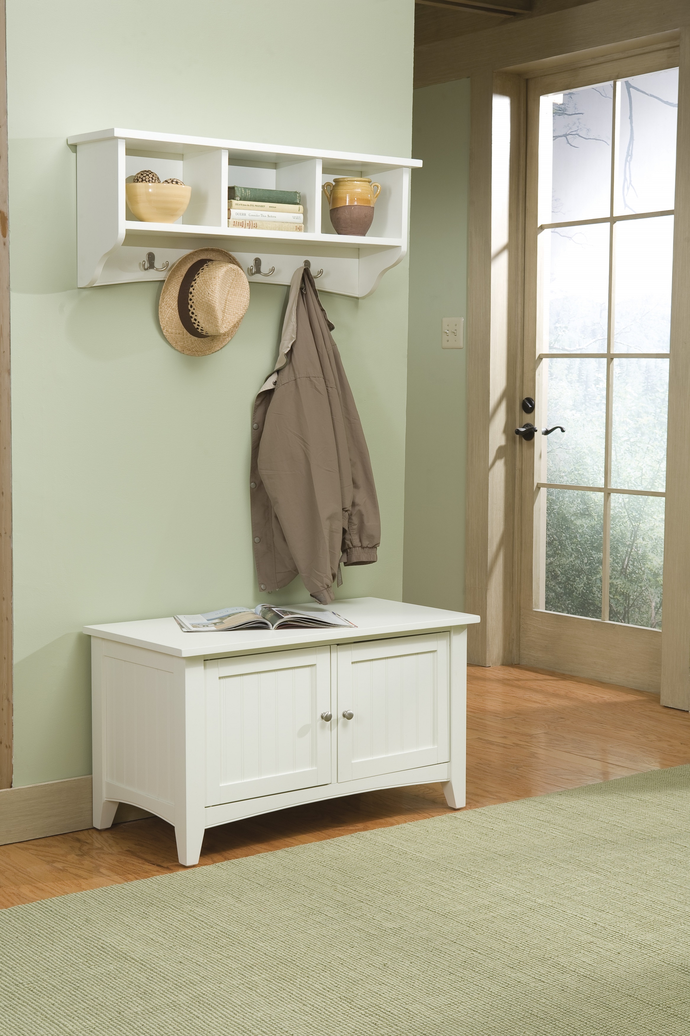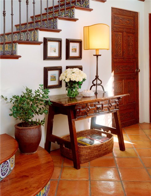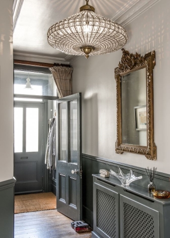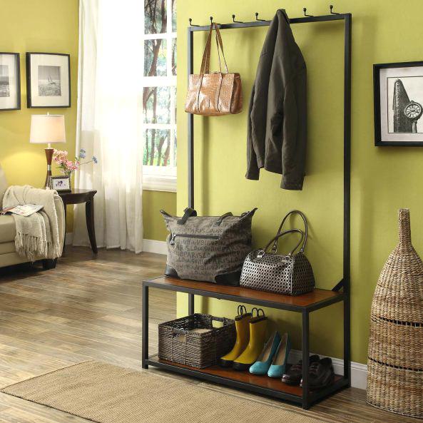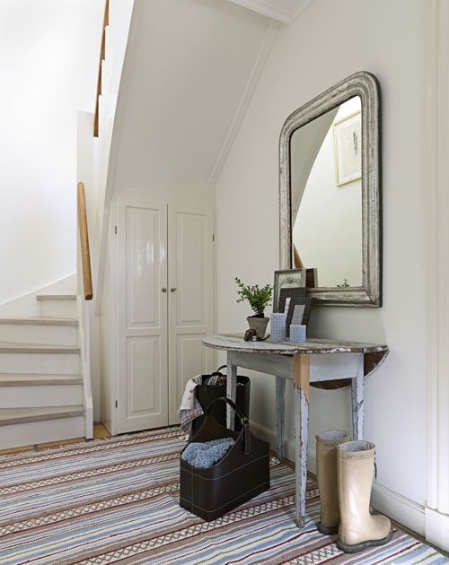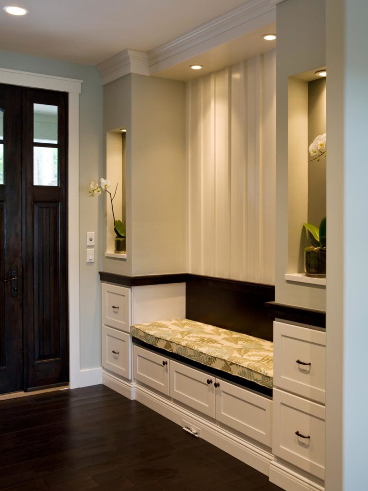 - You can place a small chest of drawers or cabinets, if space permits. If the hall is small, but with high ceilings, then you can hang the entresol.