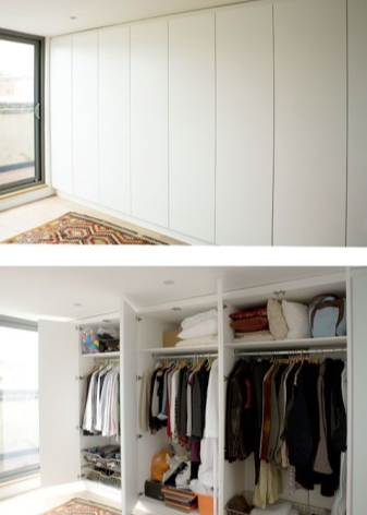- In order not to split up the space, try to find modern furniture in the style of minimalism. Best suited for wardrobes and smooth monochromatic facades.