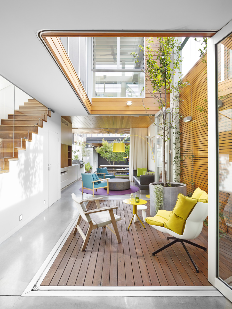 - Fans of unexpected combinations of colors and shapes can create an eclectic modern interior.