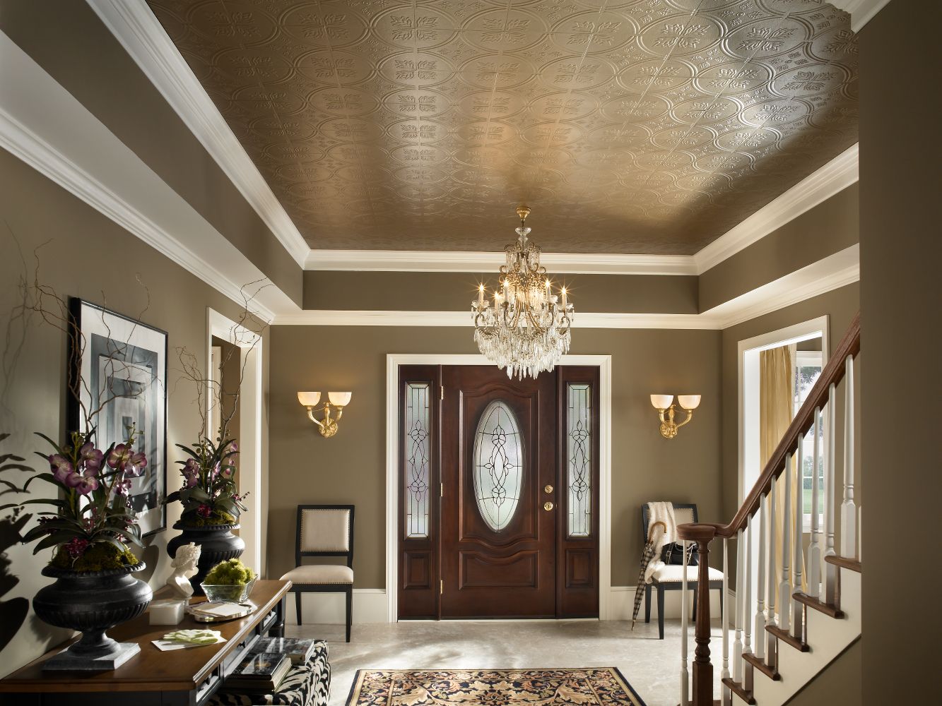 - The only source of light suitable for a small hallway. Most often it is a suspended chandelier. It is important that the lamps are bright and the light is evenly distributed.