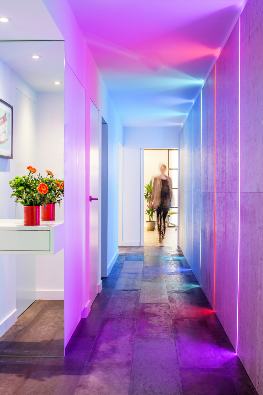 - You can divide the hallway into zones using light. For example, the space at the mirror can be allocated a small but bright source, covering a small area, and for the rest of the space you can create a soft diffused lighting.