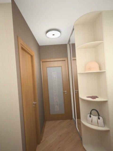 Soviet buildings left us with several types (series) of "Khrushchev". As a rule, a narrow and small corridor was present in such apartments. The layout of the apartments is such that the entrance hall could be in the form of a small square or the letter “G”.The main objective of the corridor was the separation of adjacent rooms, the other functionality was not provided.