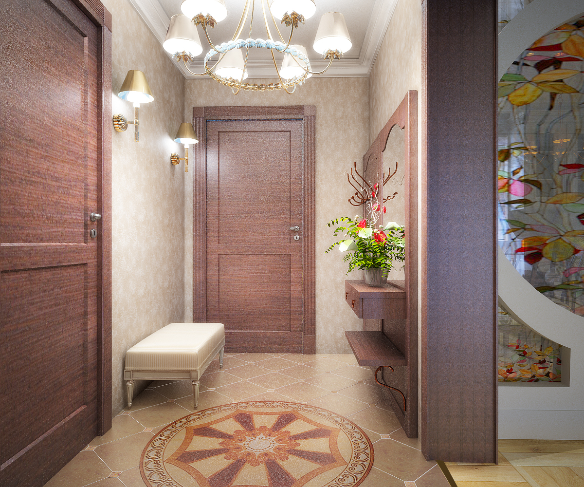 - Linoleum. The warmed material will become the excellent and economic decision for a hall. Wear-resistant and not afraid of high humidity.