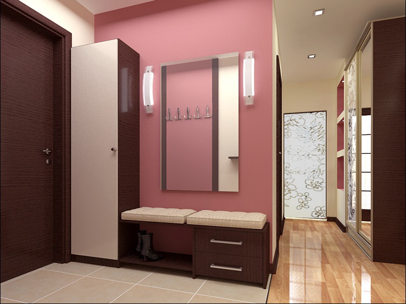 Choosing the colors of the hallway, you need to take into account the fact of low illumination of the room. Cold shades, for example, blue, lilac, purple hues will further emphasize the lack of light.
