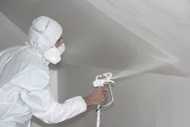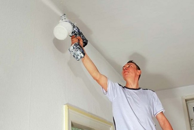 Planning to perform works on whitewashing the ceiling or walls, you can use a roller or brush, but surface treatment in this way takes a lot of time, and the process itself will be associated with discomfort and various difficulties.