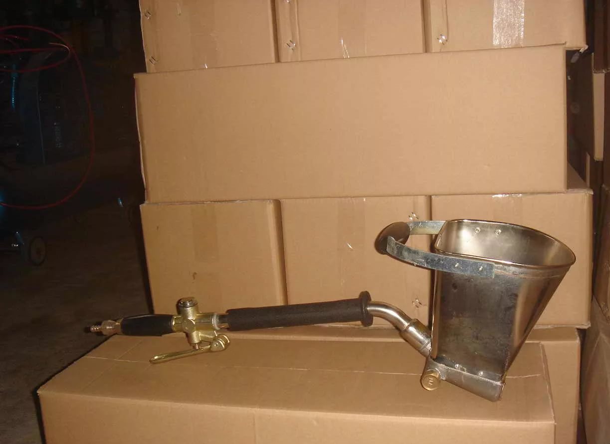 The tool fully corresponds to its name. Translated from English, it means "jumping", which explains the principle of the bucket. The bunker or plaster shovel has an exit nozzle through which the solution is applied to the treated surfaces. The manner of feeding is similar to the jumps of the mixture from the device to the base. Due to the increased pressure, the material is reliably imprinted on the surface, enhancing adhesion. Some modifications can be equipped with a rotating head.