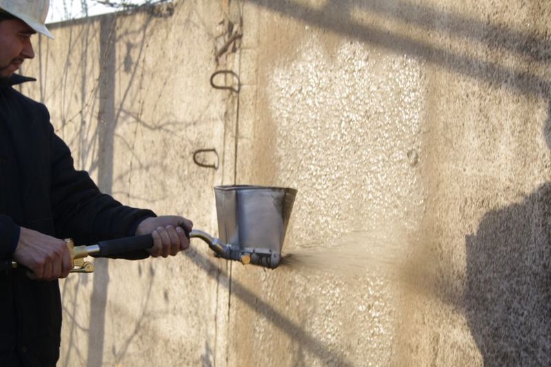 - The device is characterized by spray accuracy. In the process of finishing an even and uniform layer of plaster or other material is formed.