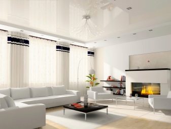 In the premises of the classical style, as well as in the Gothic and minimalist interiors used black and white version. It is important to choose the right wall decoration, lighting, furniture. A light (white) niche around the perimeter of the ceiling will help to expand the room, and furniture of simple geometric shapes made of wood will add elegance.