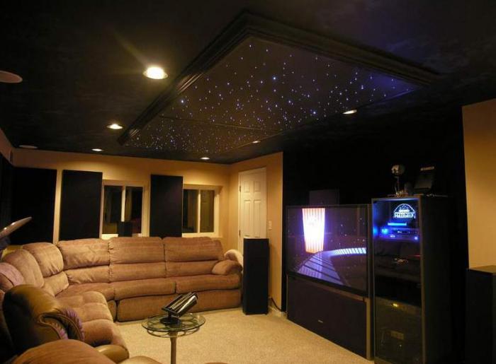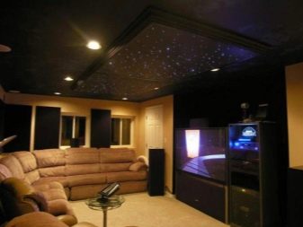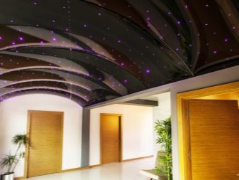 - Fiber optics. Additional elements of the lighting system, are used to create a beautiful flicker, emphasize the texture of the ceiling.