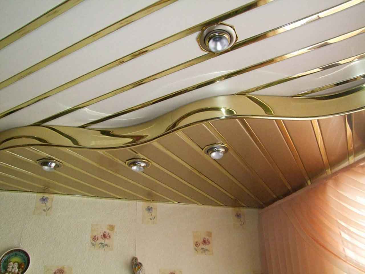 The ceiling of PVC panels is usually found in bathrooms, sometimes in the kitchen. It is almost not used in residential premises, since it is not environmentally friendly, it is fire-hazardous, and from the point of view of visual appeal one can find more worthy options. Of the benefits - affordability, ease of care.