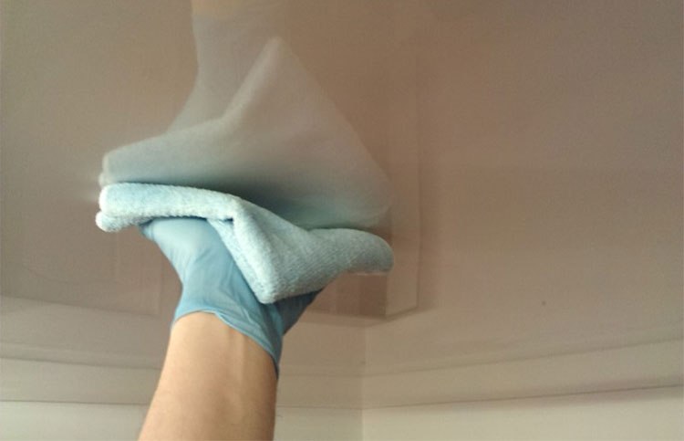 When wiping glossy models should move along the seams, circular movements can leave streaks on the surface. Fabric ceilings can be cleaned with steam mops, setting a minimum temperature.