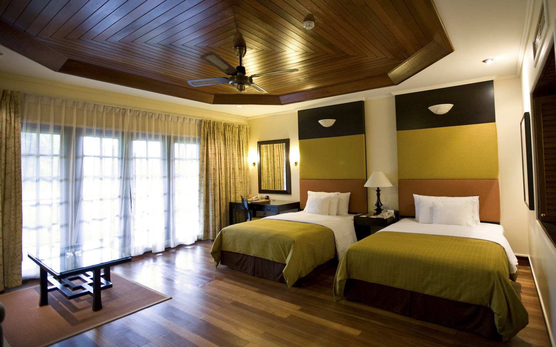 Two-level ceilings made of wood are almost not mounted, which is associated with the high price of the material, its flammability, the need to protect with special compounds, as well as a tendency to warp.