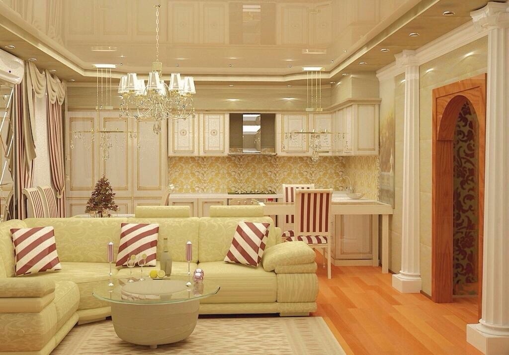In terms of shape, all ceilings are divided into 2 groups: rectilinear and curvilinear.