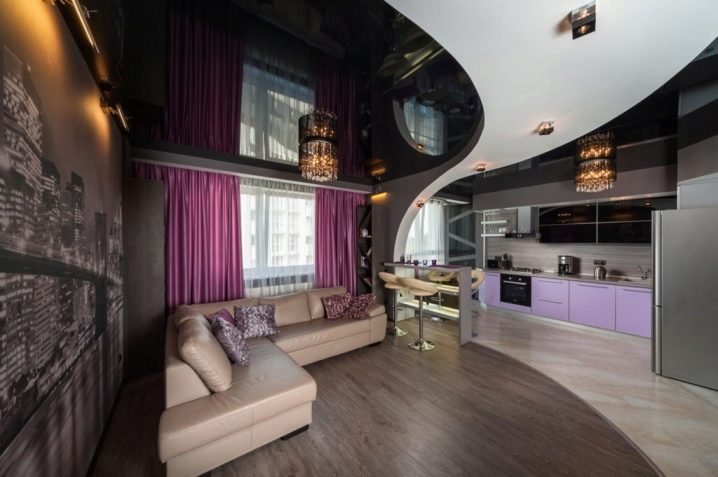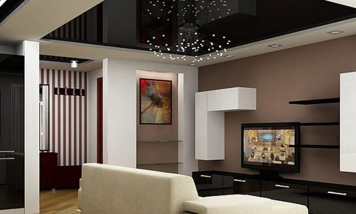 Black ceiling is better to combine with light walls, thus it will be possible to avoid excessive gloom and visually expand the room.