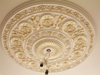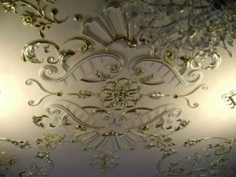 There are various options for the use of gypsum materials, but one of the most popular methods is the installation of stucco. Going to mount stucco, you will need to prepare the ceiling surface. Make the ceiling as flat as possible, put putty on it.Then you will need to mark the pattern with which you are going to decorate the surface.
