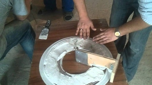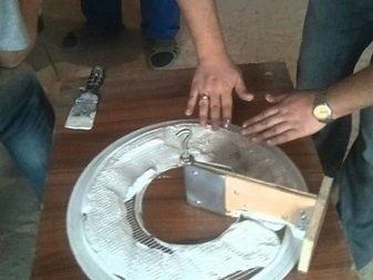 If the gypsum material blurs the shape around the edges, remove it using a trowel. Then you will need to proceed to the reinforcement. Use for this wire from copper or aluminum, sanitary tow, hemp. Rebar should be placed on the filled surface. Then smooth it with a spatula. Pre-mix the remaining material, pour it. After a while, the plaster will start to set.