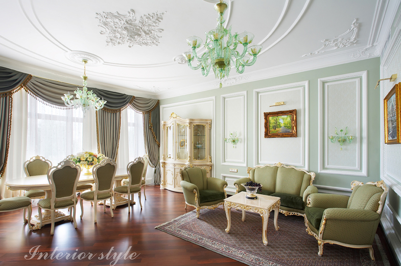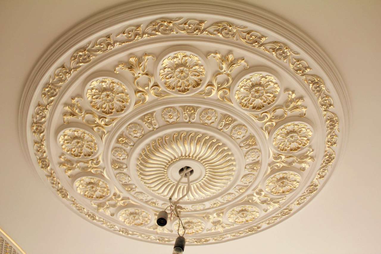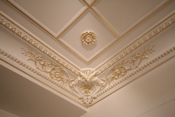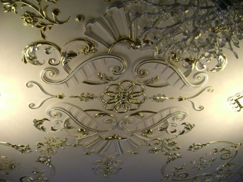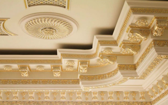 Having painted the plaster decorative elements with gold paint, you can make the hall look like a rich royal chamber.