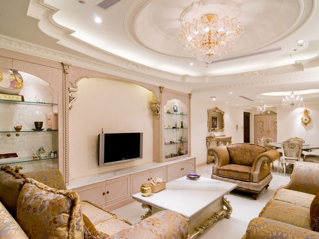 Gypsum finish gives the room a luxury.