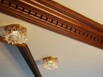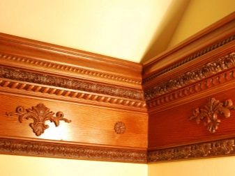 Wood for the production of ceiling decoration is used much less. Both cheap and expensive types of wood are suitable for making such moldings. This type of material has its advantages.