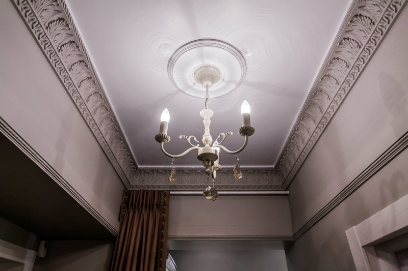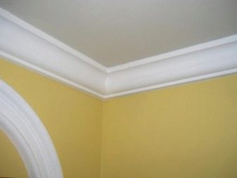 Among the shortcomings you can list a few points. Firstly, polyurethane moldings produce a certain width, which sometimes is not enough to close the significant gaps between the wall and the ceiling. Secondly, they do not bend too much, so they can be installed only on a perfectly aligned surface, and they are generally not suitable for rounded interior fragments.