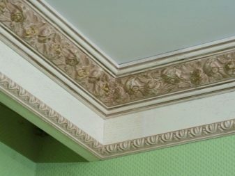 For style art deco or kitsch You can make the plinth in contrast with the ceiling and add decorative details to the corners. All sorts of bright colors, stucco in antique style and gilding will be appropriate here.
