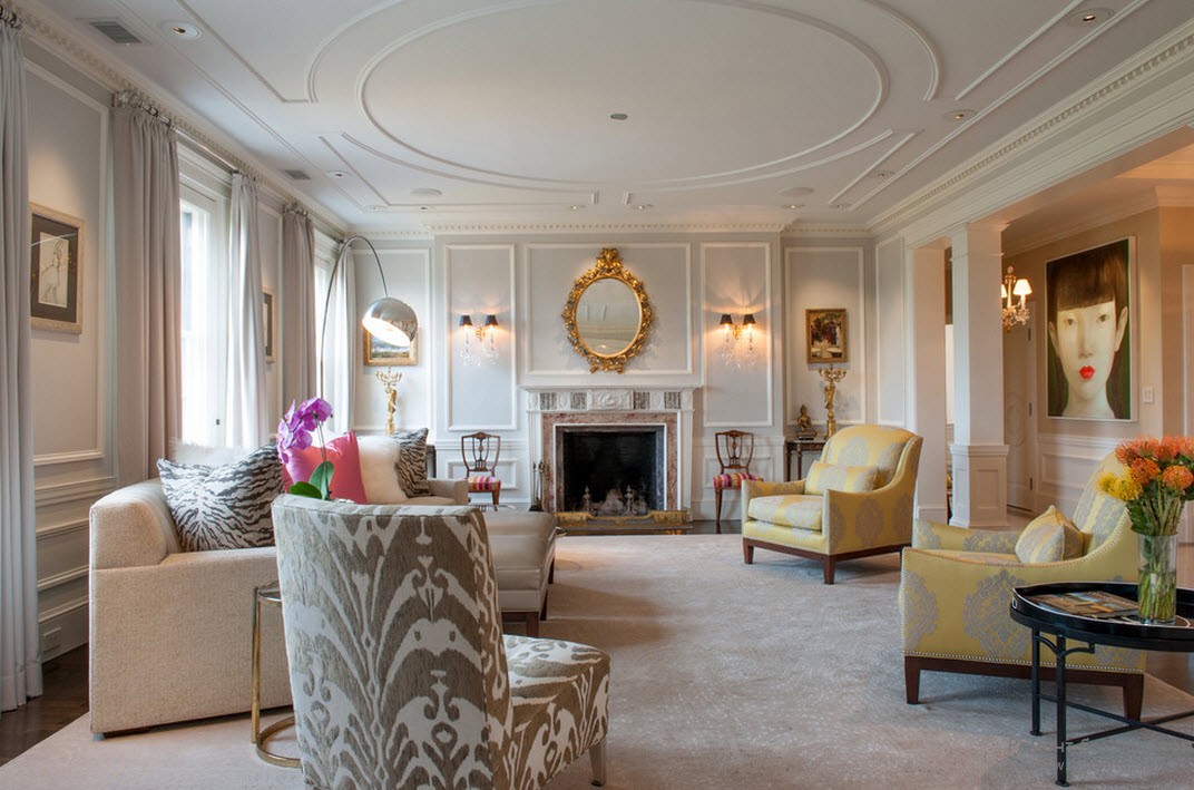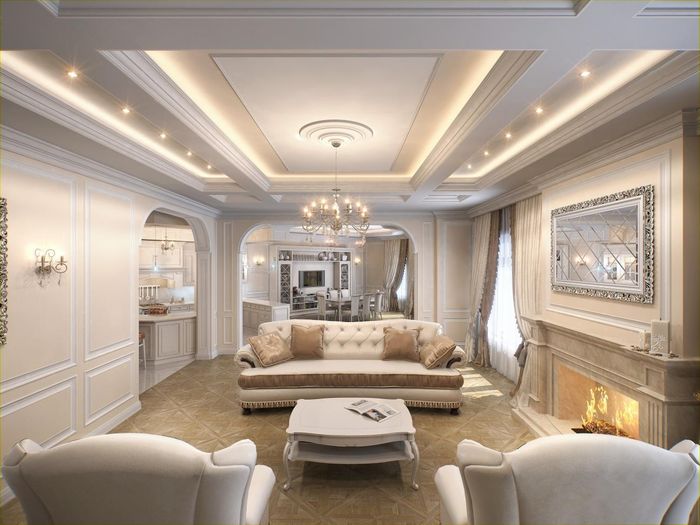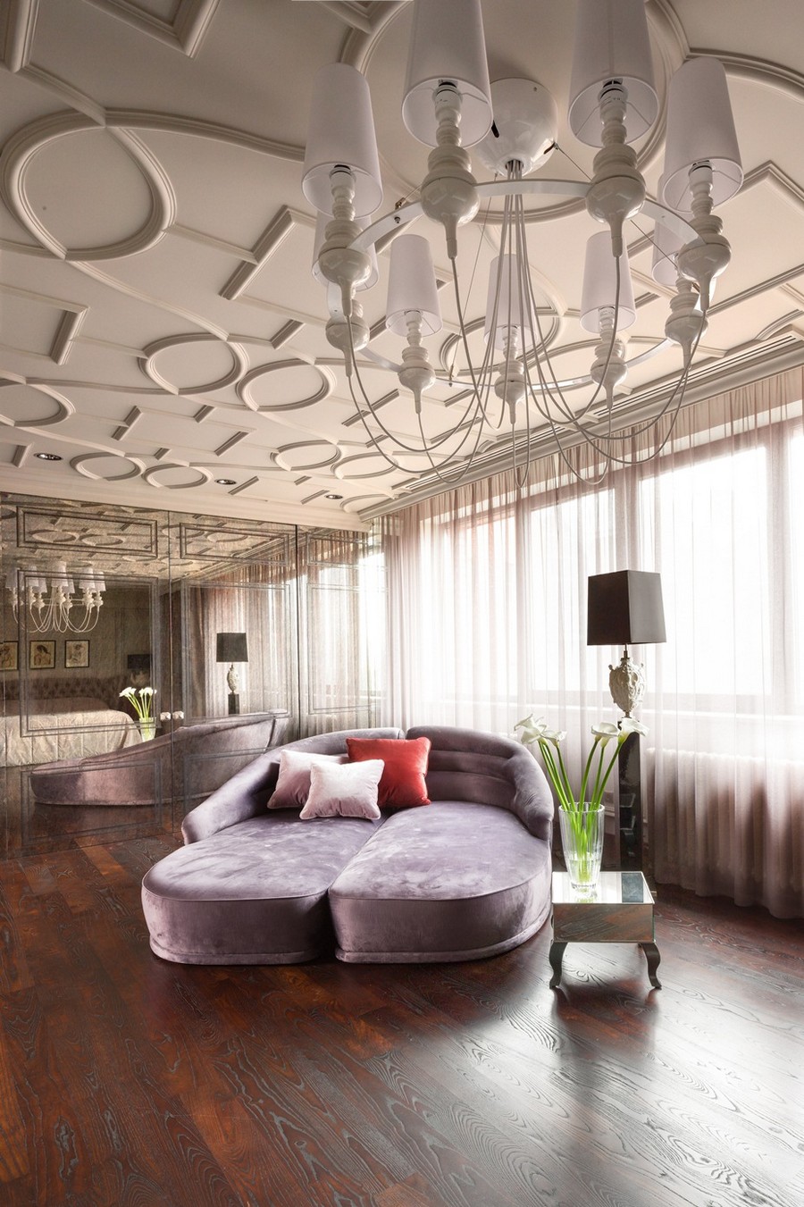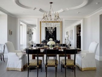 Gypsum plinth for the ceiling is a versatile decoration for any style. Most often it is used in a classic interior, as well as for rococo or baroque styles. These trends in the interior are distinguished by their special charm, refinement and a certain amount of pomp. It can be of various widths, as well as with an ornament or sleek, which makes it possible to mask possible imperfections of the premises, as well as use it in an interior designed in the style of modern or minimalism.