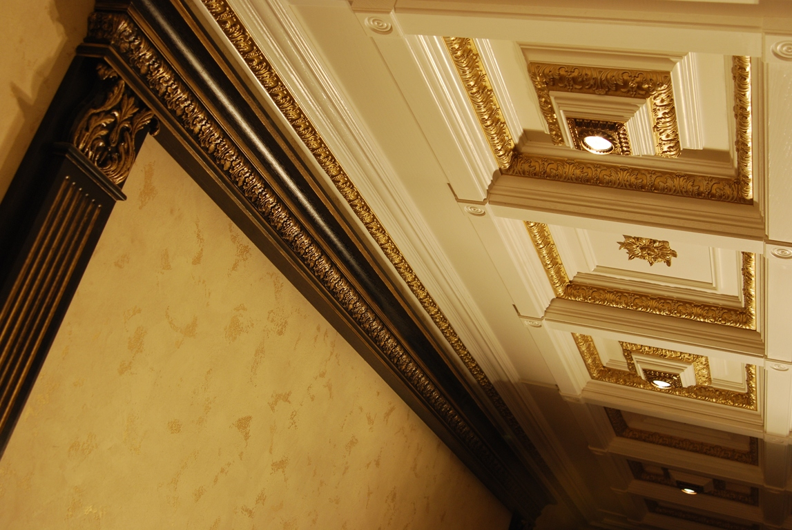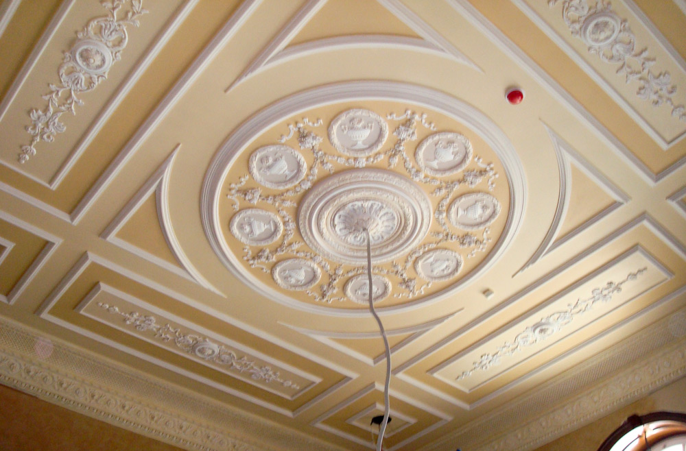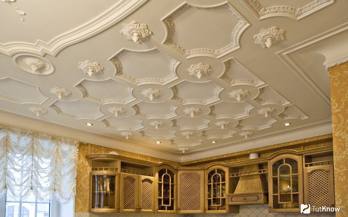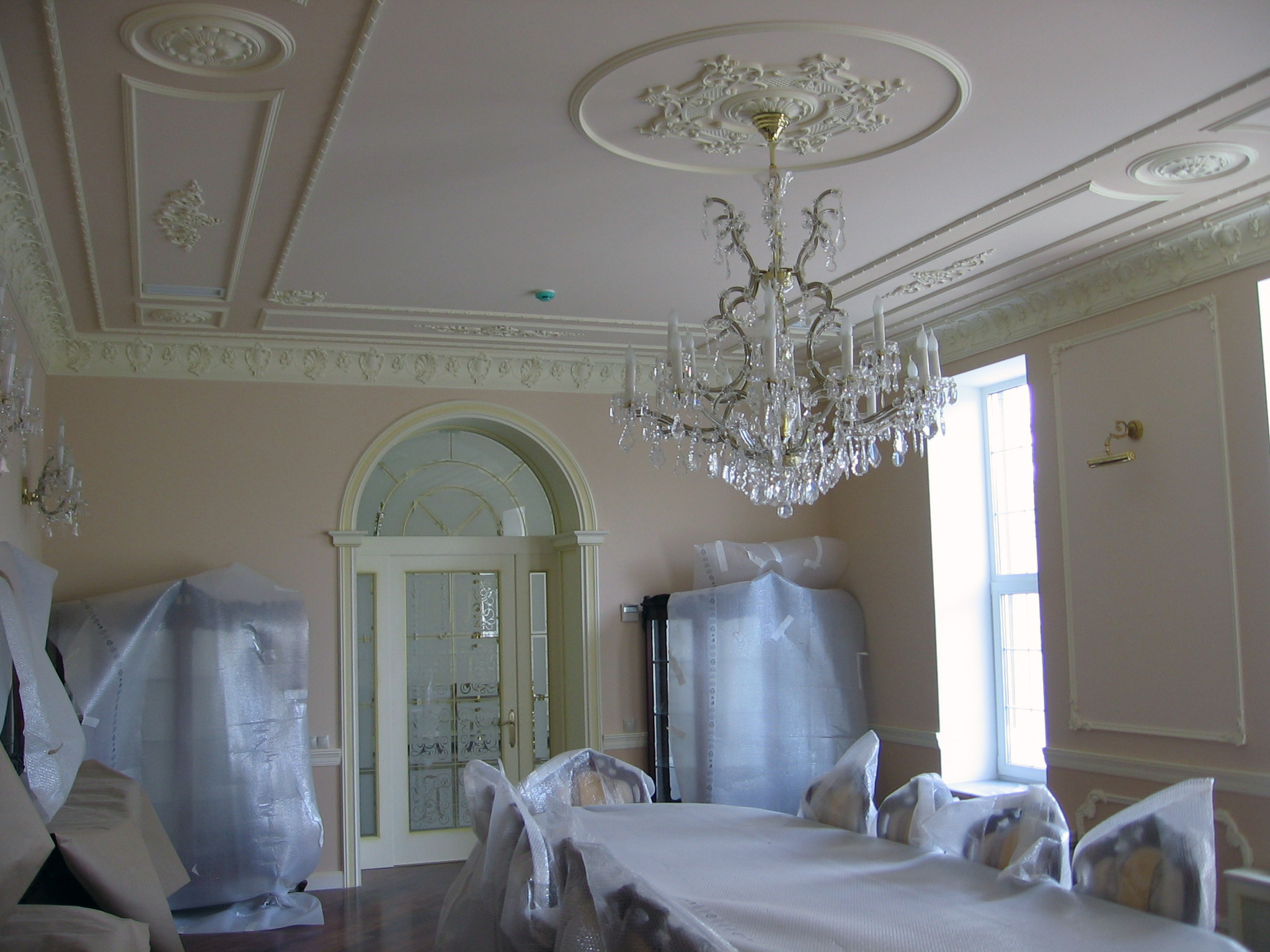 Since store options often do not meet the sophisticated demands of consumers, there are many companies offering to make a similar decor with any pattern. And if you want plaster molding can be made independently. Gypsum is an environmentally safe material: it is highly refractory, non-toxic and does not emit any harmful substances. He passes the air and is able to create a special microclimate in the room.Gypsum decorative elements are initially white and do not lose color over time, and if desired, they can be painted or even varnished to imitate any texture.