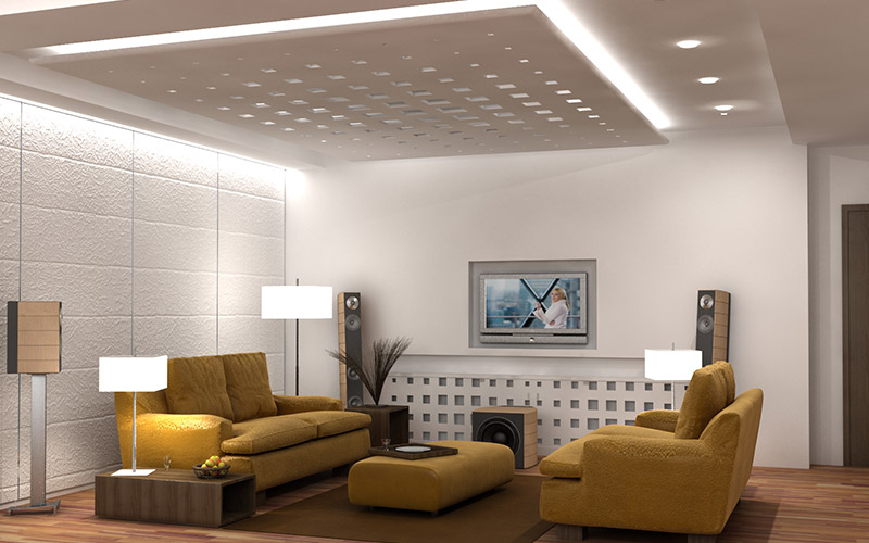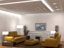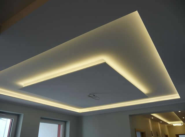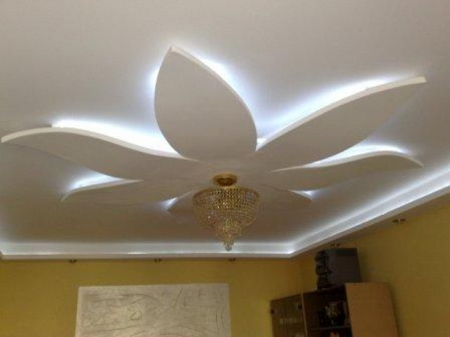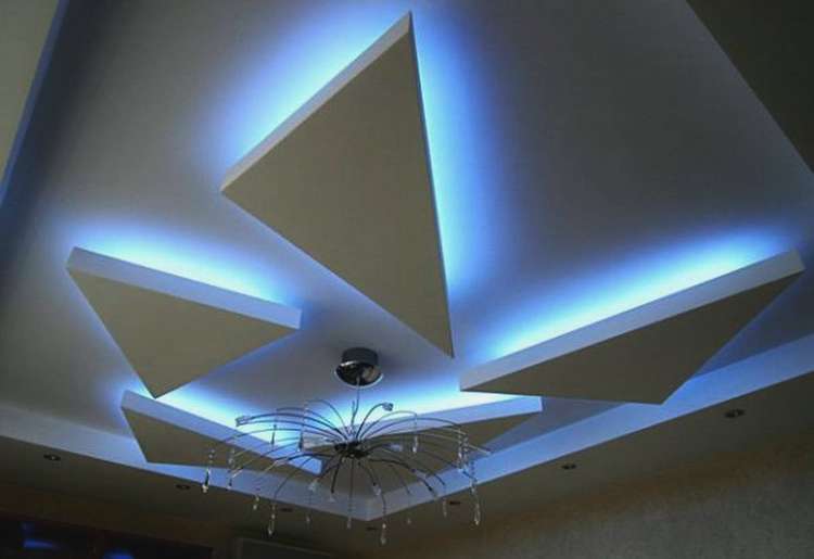 When installing a plasterboard ceiling, a metal frame is used that will support a considerable weight of the structure. As in the case of a stretch, plasterboard ceiling can be single-level and multi-level.Plasterboard levels allow you to perform the most intricate shapes with light, but for hover effect, lighting elements should be hidden in special niches. Thus, the light is directed upwards, reflected from the ceiling and the upper part of the wall, which creates the feeling of separate elements floating in the air.