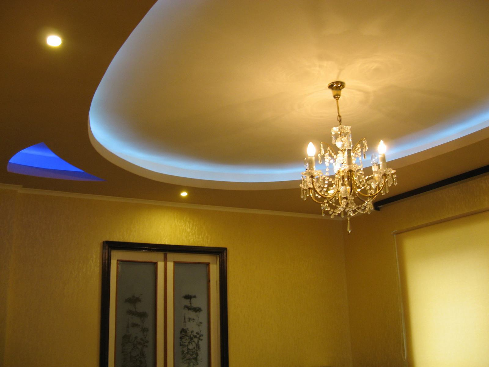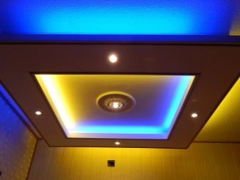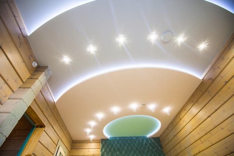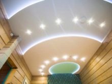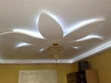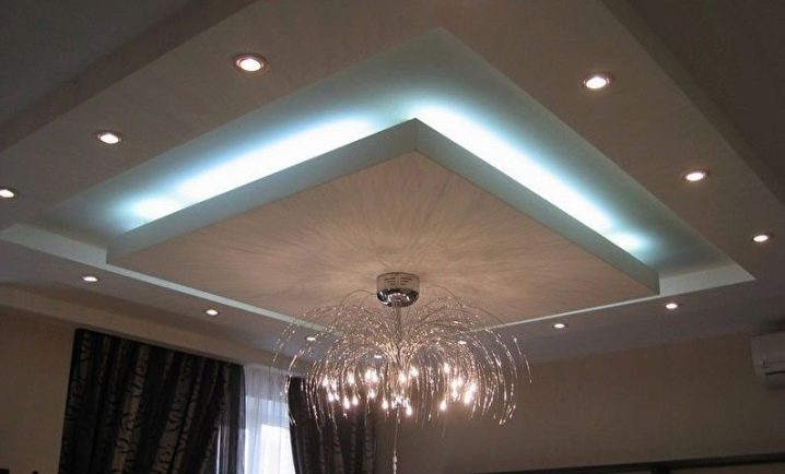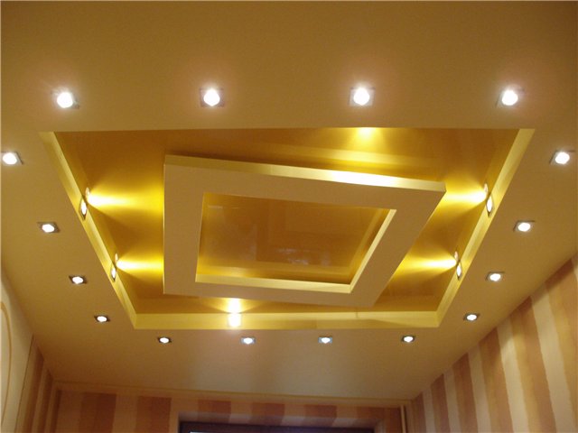 Requirements for lighting devices are less stringent - drywall withstands high temperatures, does not deform when overheated. therefore in the ceiling structures of this type, you can use any lamps.