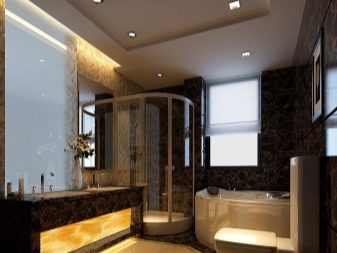 Due to the increased humidity in the room, for bathrooms it is recommended to choose stretch PVC ceilings. Cold monochromatic colors in bathrooms look particularly stylish when the hidden diffuse lighting creates a sense of height and weightlessness of the ceiling. The soaring elements and multi-level structures are well combined with 3D drawings, with convex relief elements of decoration.