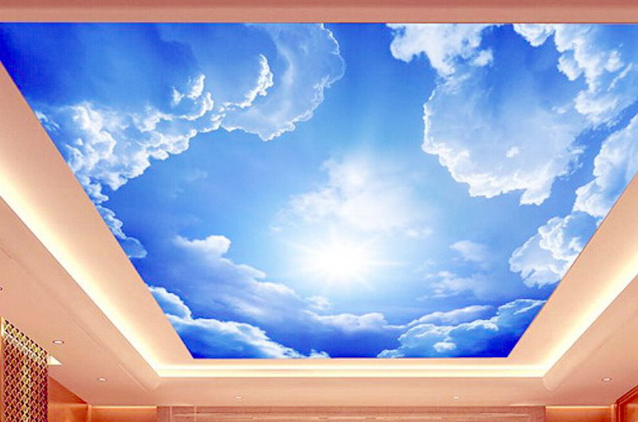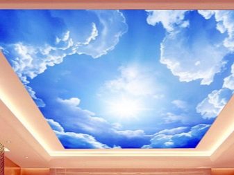 Night or daytime sky, created with the help of stretch ceilings, will add romance to the bedroom.