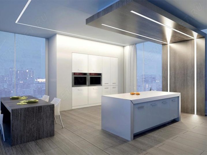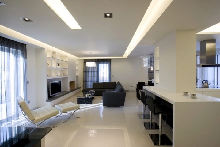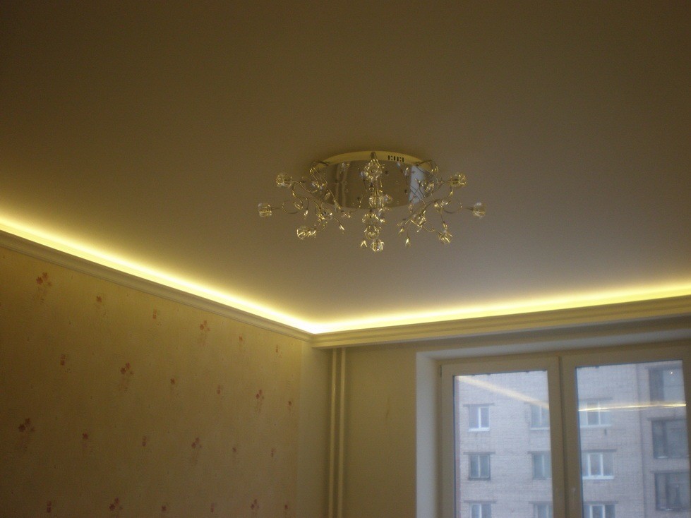 Create a soaring effect of the ceiling in a more economical way. This includes the installation of lighting with the use of a ceiling cornice. Each of the designs has its advantages and deserves a separate description.