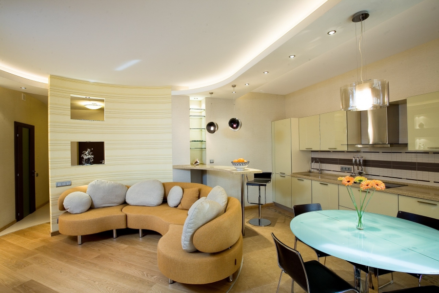 Russian consumers agree that floating ceilings are a unique opportunity to increase the space of a small standard apartment.However, one should choose light shades so that the ceiling space does not cause a “pressing” sensation.