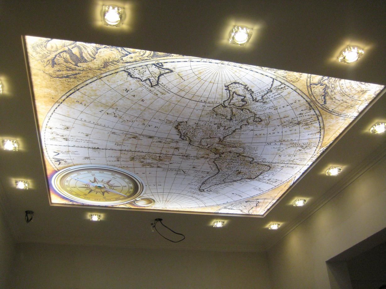 For adolescents, a calmer design is important, a solid ceiling with eaves illumination or a two-level one with the image of geographic or astronomical maps, landscapes or sports-related elements. Calm abstract figures will not be superfluous either, they will create a certain style, and contemplation of a white ceiling during the period of reflection will cease to be a boring exercise.