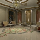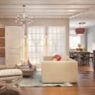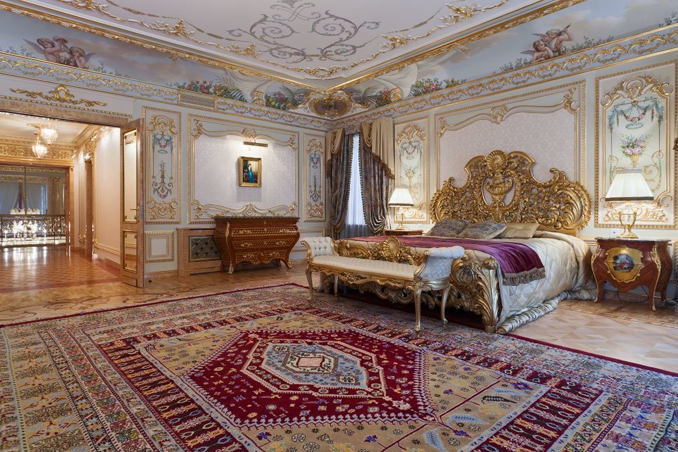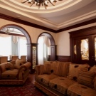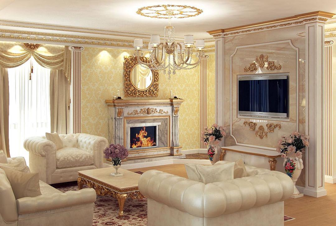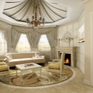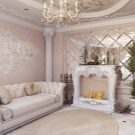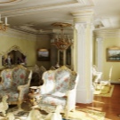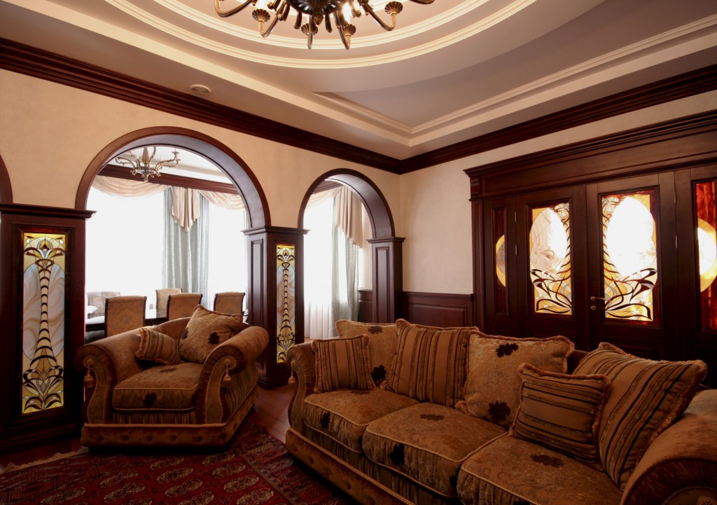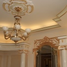 Characteristic for this style is the presence of stucco in the form of rosettes for luxurious crystal chandeliers, borders around the perimeter of the room or ornaments in the corners and even entire panels. All decorative elements are arranged symmetrically.
