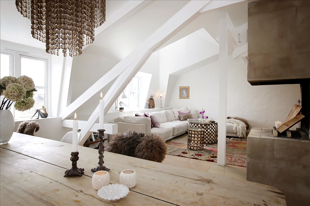 Room and ceiling decoration in Scandinavian style differs in prevalence of light shades.The color range is limited to pure white, as well as light blue and light gray tones. For the ceiling space in the spirit of Scandinavia is characterized by monotony. The ceiling can simply be plastered and then painted or painted.