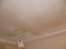 The traditional and cheapest way to refresh the ceiling is whitewashing. To do this, you need only lime and pre-alignment of the surface. If the furniture from the room is not removed, it should be covered with protective material. Even with the tidiest whitewash, lime is sprinkled everywhere.