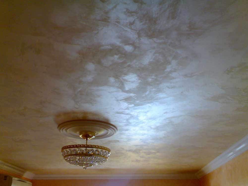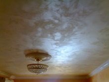 If it is a bathroom or a kitchen, it is better to use ceramic tile or suspended ceiling.Both that and other option at the correct installation will perfectly cope with excess moisture. It is convenient to wash them with the help of gel means. They are both beautiful and practical at the same time. It is possible, of course, to use decorative plaster on the ceiling in these rooms, if it is covered with a special water-repellent wax. But if any element is damaged, it will not be possible to restore the same color.
