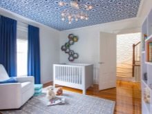 Of course, it is more difficult to glue wallpaper on the ceiling than on the walls.But if you attract an assistant, then you can cope with the task much faster. Wallpapers provide an opportunity to focus on different areas, if you choose different patterns and shades.