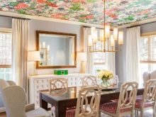 Despite the huge selection of materials for ceilings, which offer construction stores, wallpaper also find their application. And this is not surprising, because with the current diversity, you can choose wallpaper of different colors, with interesting drawings, unusual texture. There are still liquid and wallpapers. And each type is easily glued to the ceiling thanks to a special glue.