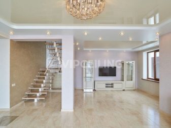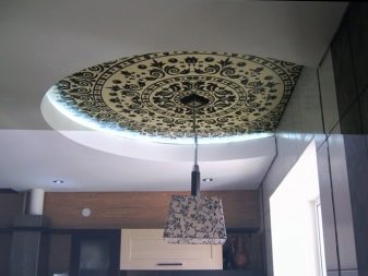Stretch ceilings have different textures and shades. Multi-level can combine different colors and textures. Lighting in the design of such ceilings plays a big role. You can use beautiful chandeliers, lanterns, spotlights. All this is suitable for high ceilings. Low overload unnecessary elements are not worth it.