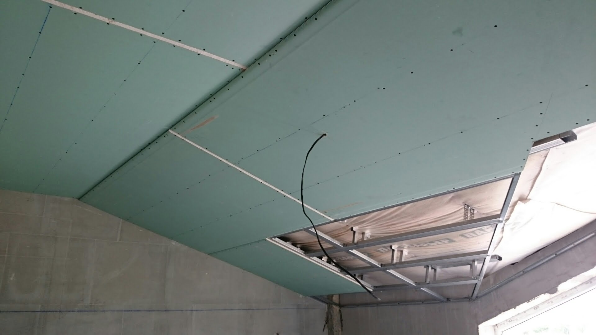 For the construction of a gypsum ceiling, the metal framework is first reinforced, and then sheathed with plasterboard sheets. Then you can apply paint, plaster or wallpaper on this ceiling.