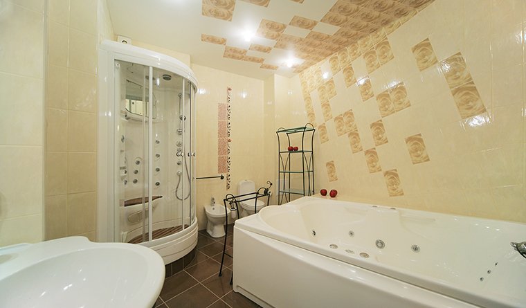 Most often, ceramic tiles on the ceiling are placed in the bathroom and in the kitchen. Therefore, you need to think more about the fact that the primer and glue must contain an antiseptic, which will protect against moisture and prevent the appearance of fungus. The color palette, the variety of patterns on the tile and its structure do not limit the choice of the most interesting solutions.