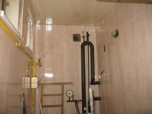 There is another room in the house that also needs repairs. This is the boiler room. Here is the important equipment, through which the house is warm, light, and there is always water - cold and hot. Order should reign here, but the ceiling can be the simplest. It is enough just to whiten it. Upstairs are all communications, access to which must always be.