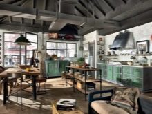 Rough decoration and furniture in an elegant style are combined in a modern and cozy interior. The main components of this design are ceilings and walls, decorated with a clumsy finish. Despite the contradictory combination of different materials, the ceiling in the style of "loft" is becoming more and more popular.