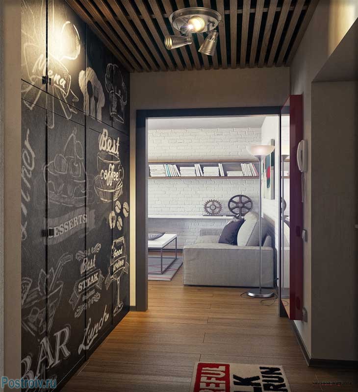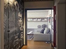 You can install a hidden lighting around the perimeter of the rooms or a few lampshades in a row, which will create the effect of a wide space. Various LED inscriptions on the wall and small LED bulbs will look stylish.