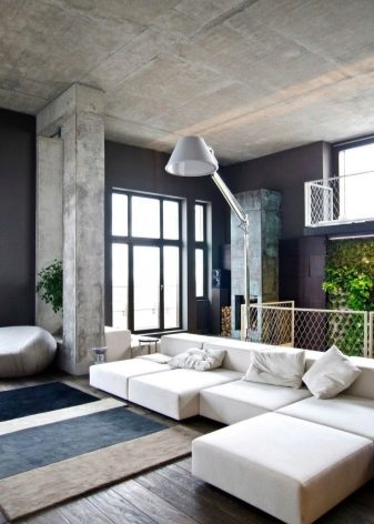 - Concrete. Concrete coating is a classic solution for the ceiling in the style of "loft". In addition, it is also a fairly simple method of surface treatment.